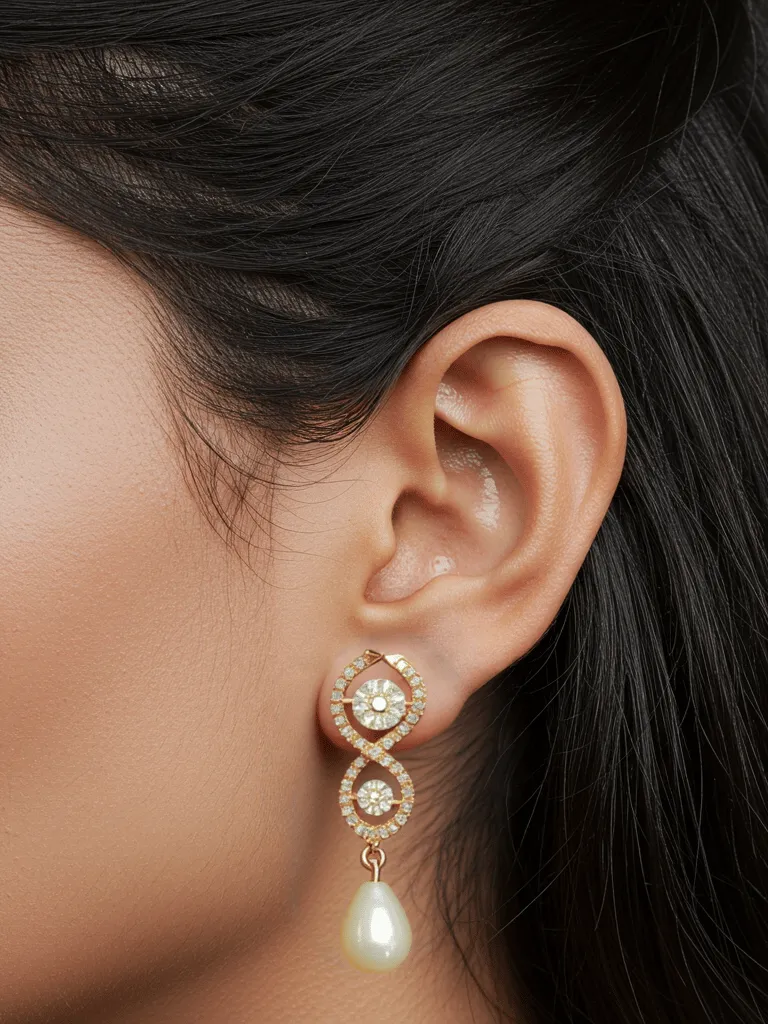 Elevate your style with these stunning rose gold pearl drop earrings, meticulously crafted to add a touch of luxury to any ensemble. Each earring showcases dazzling, high-quality stones that brilliantly catch the light, while a graceful teardrop-shaped simulated pearl pendant creates an air of timeless sophistication. Perfect for both everyday elegance and special occasion. An ideal gift for someone special or a glamorous treat for yourself.