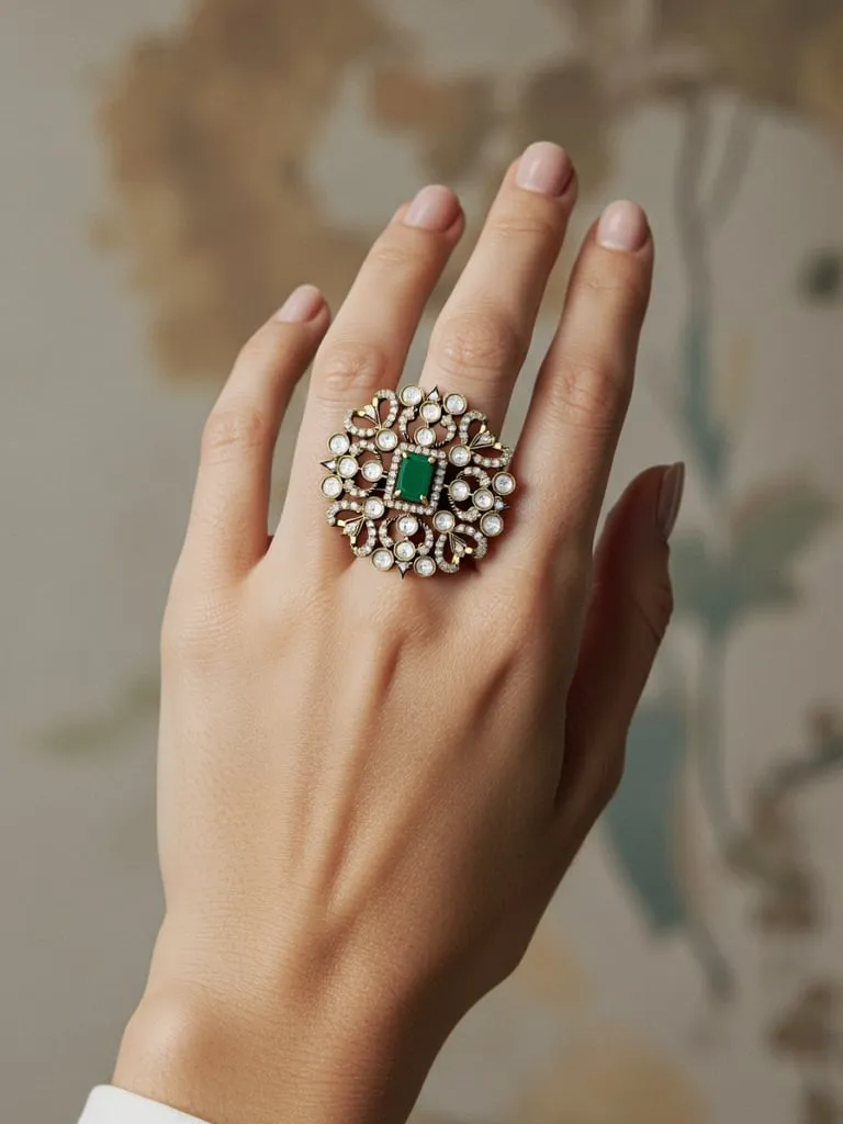 Elegant handcrafted ring with green centerpiece